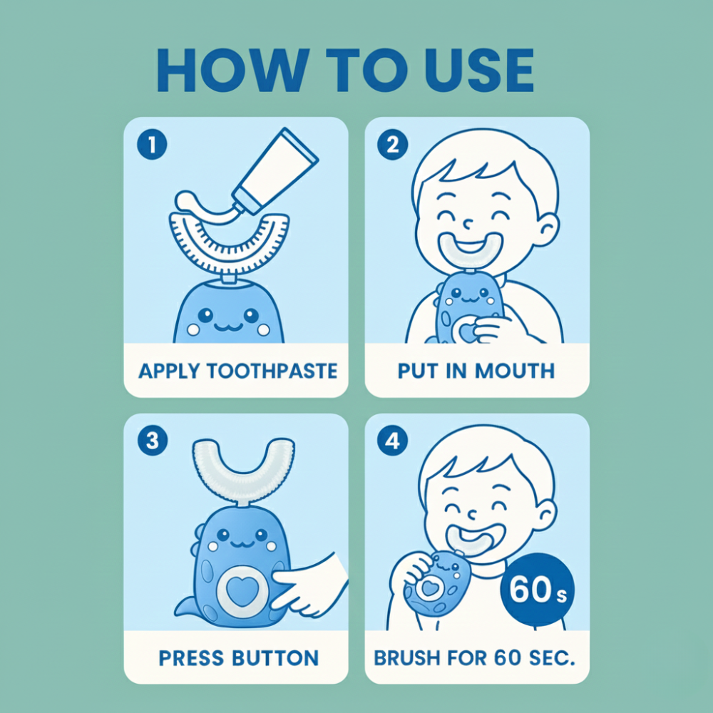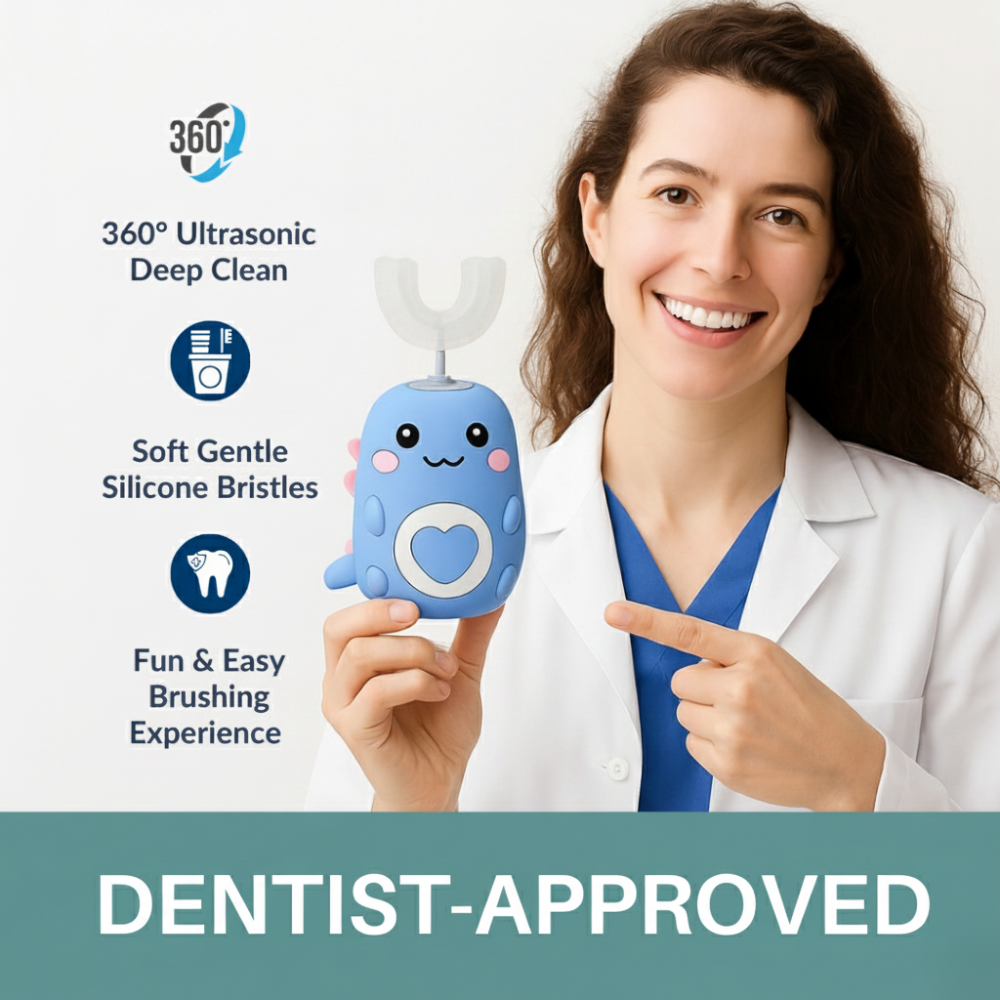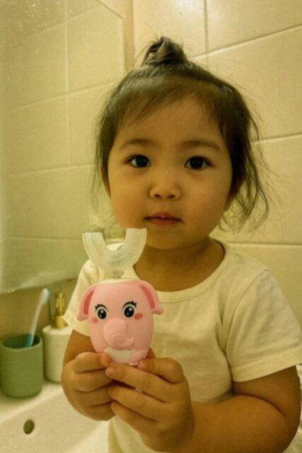 Absolutely. The 360° U-shaped mouthpiece reaches multiple teeth at once, including hard-to-reach areas kids often miss with manual brushing. It’s designed to improve consistency and overall oral hygiene.